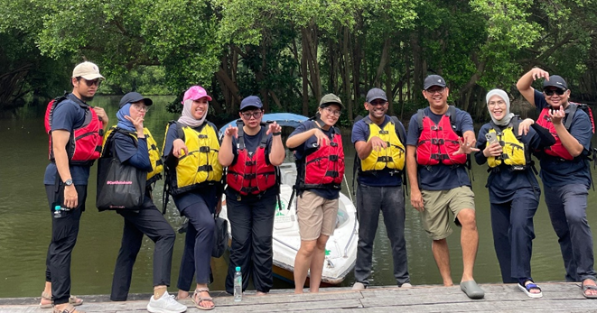Usai sesi materi, dilanjutkan dengan technical briefing dan pembagian kelompok. Masing-masing kelompok dipandu oleh fasilitator Kak Jeka, Kak Pras, Kak Ashila, dan Kak Debora. Dengan pendampingan ini, peserta diajak berkeliling area TWA Angke Kapuk, menikmati keindahan mangrove secara langsung, sambil mengabadikan momen dengan berfoto bersama.
